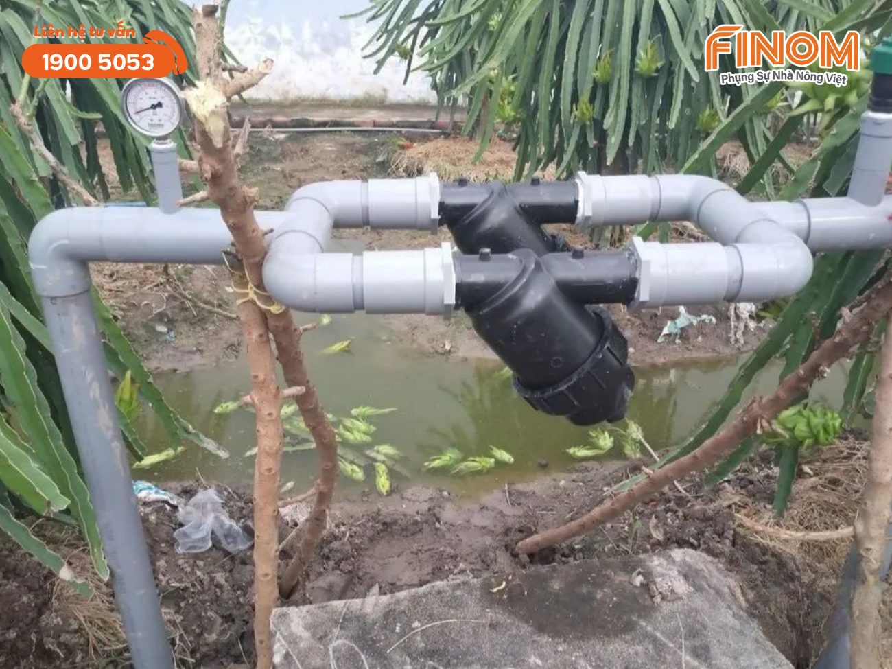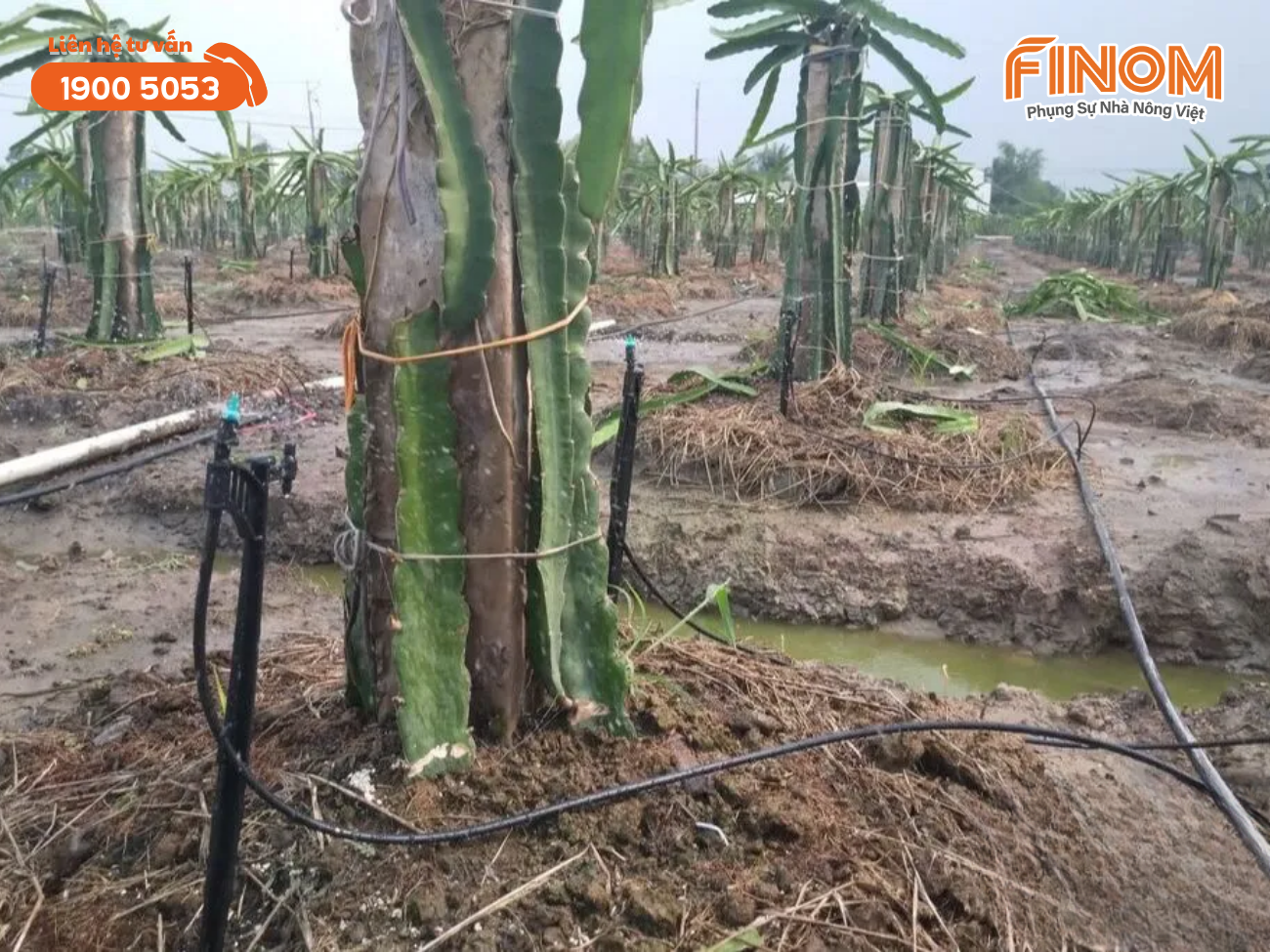 Hai béc tưới FN100 đặt tại mỗi gốc thanh long