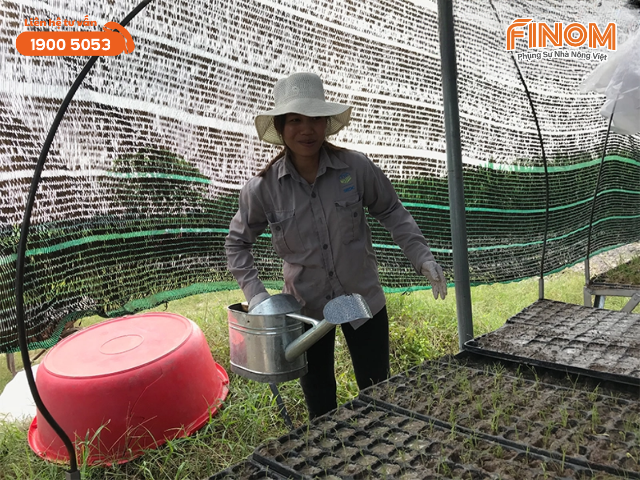 Công nhân sử dụng phương thức tưới thủ công trước khi lắp đặt hệ thống tưới