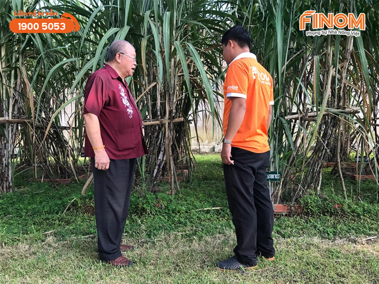 Cán bộ kỹ thuật của FINOM trao đổi kỹ thuật với GS. Võ Tòng Xuân - chuyên gia đầu ngành lúa gạo và mía đường của nước ta