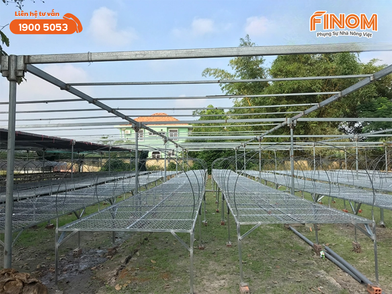 Giàn thép bố trí giá thể trước khi lắp đặt hệ thống tưới