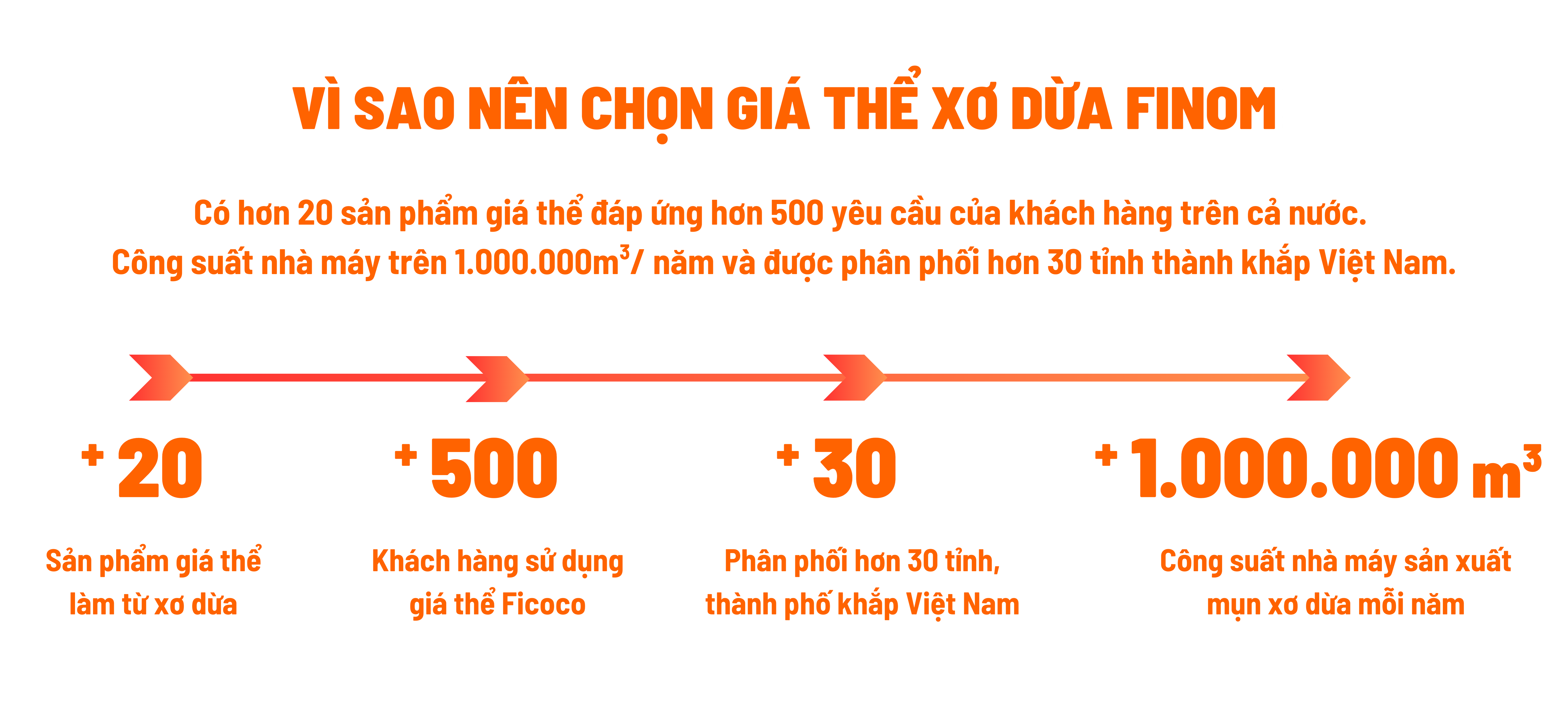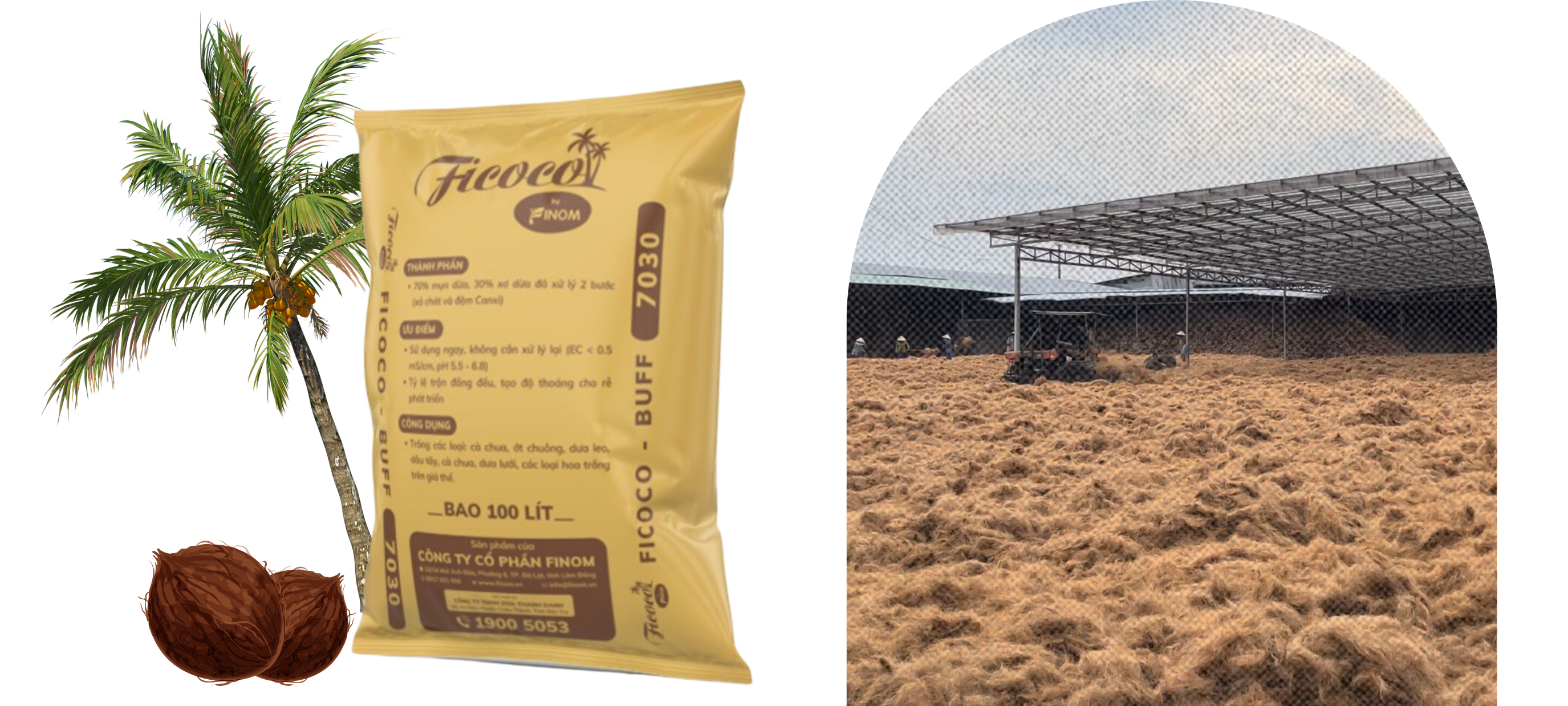 Mụn dừa ép khối sau khi ngậm nước có thể tạo ra 70-80 lít xơ dừa trồng cây với tỷ lệ đồng đều 95% mụn dừa và 5% xơ dừa xử lý sạch chất chát (tannin), được nghiên cứu và sản xuất bởi thương hiệu FICOCO by FINOM. Đặc biệt, sản phẩm được lấy từ 100% nguyên liệu vỏ dừa già.