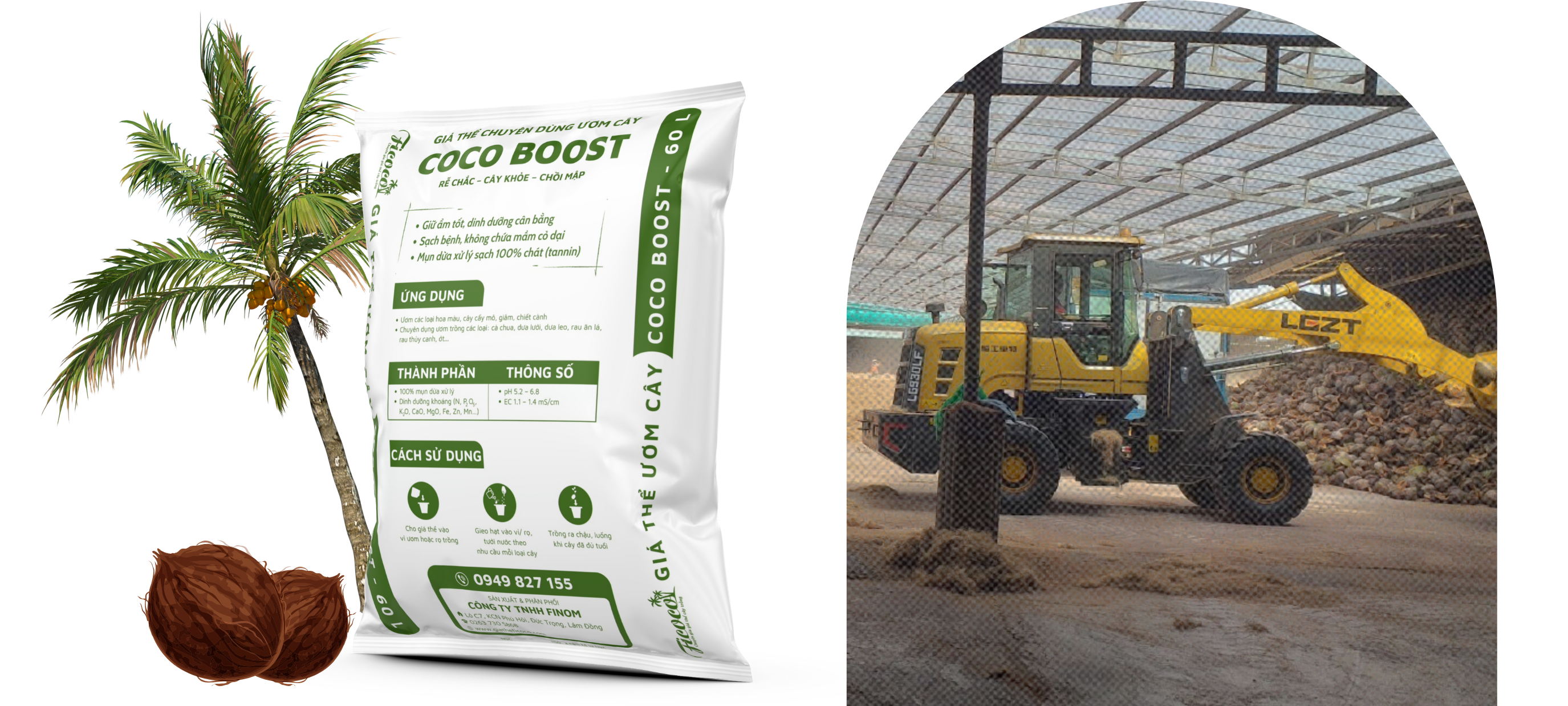 Là giá thể ươm cây được nghiên cứu và sản xuất bởi thương hiệu FINOM, với thành phần 100% từ mụn dừa xử lý sạch chất chát (tannin), phối trộn các loại dinh dưỡng khoáng phù hợp cho giai đoạn ươm cây. Đặc biệt, sản phẩm được lấy từ 100% nguyên liệu vỏ dừa già.