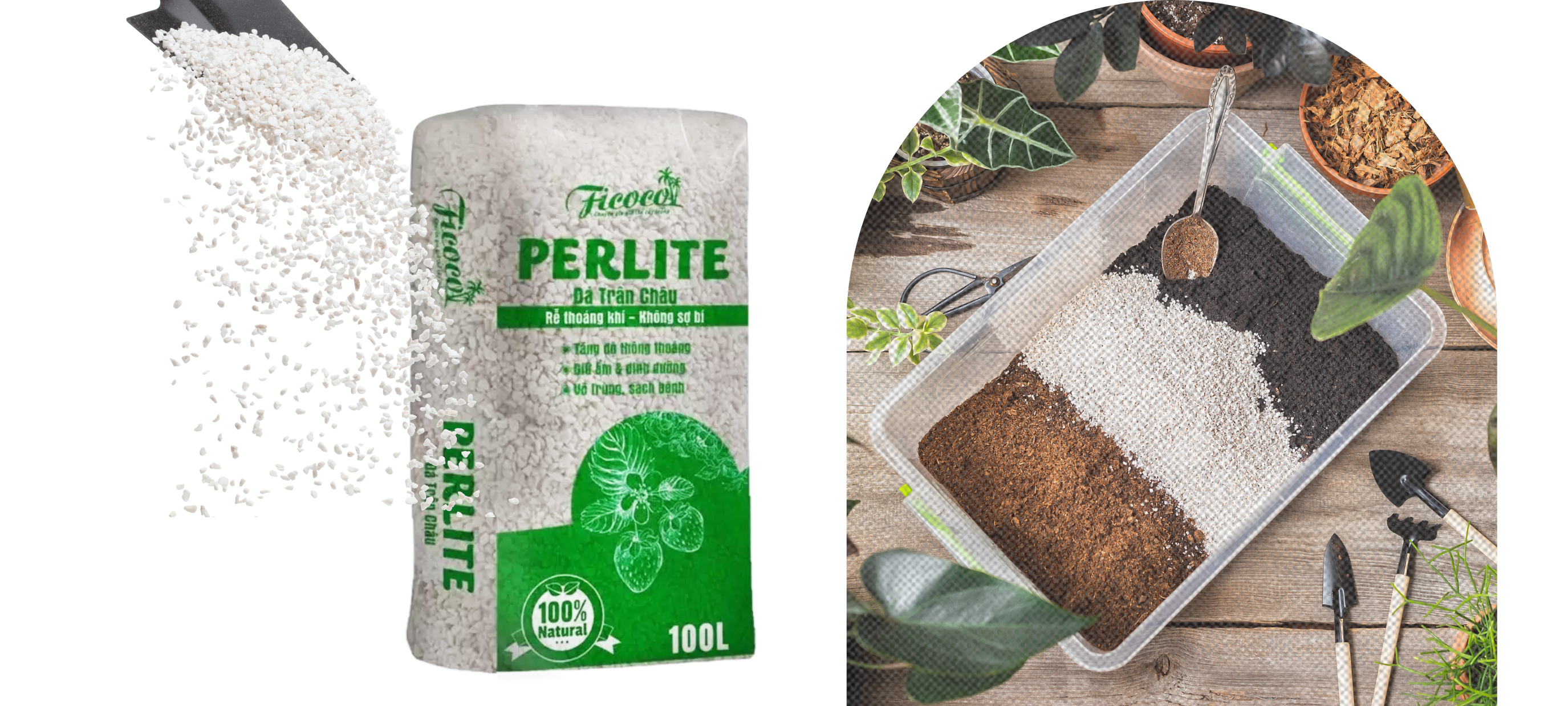 - Thành phần: 100% đá perlite đã sàn kỹ 2 lần, không bụi mịn