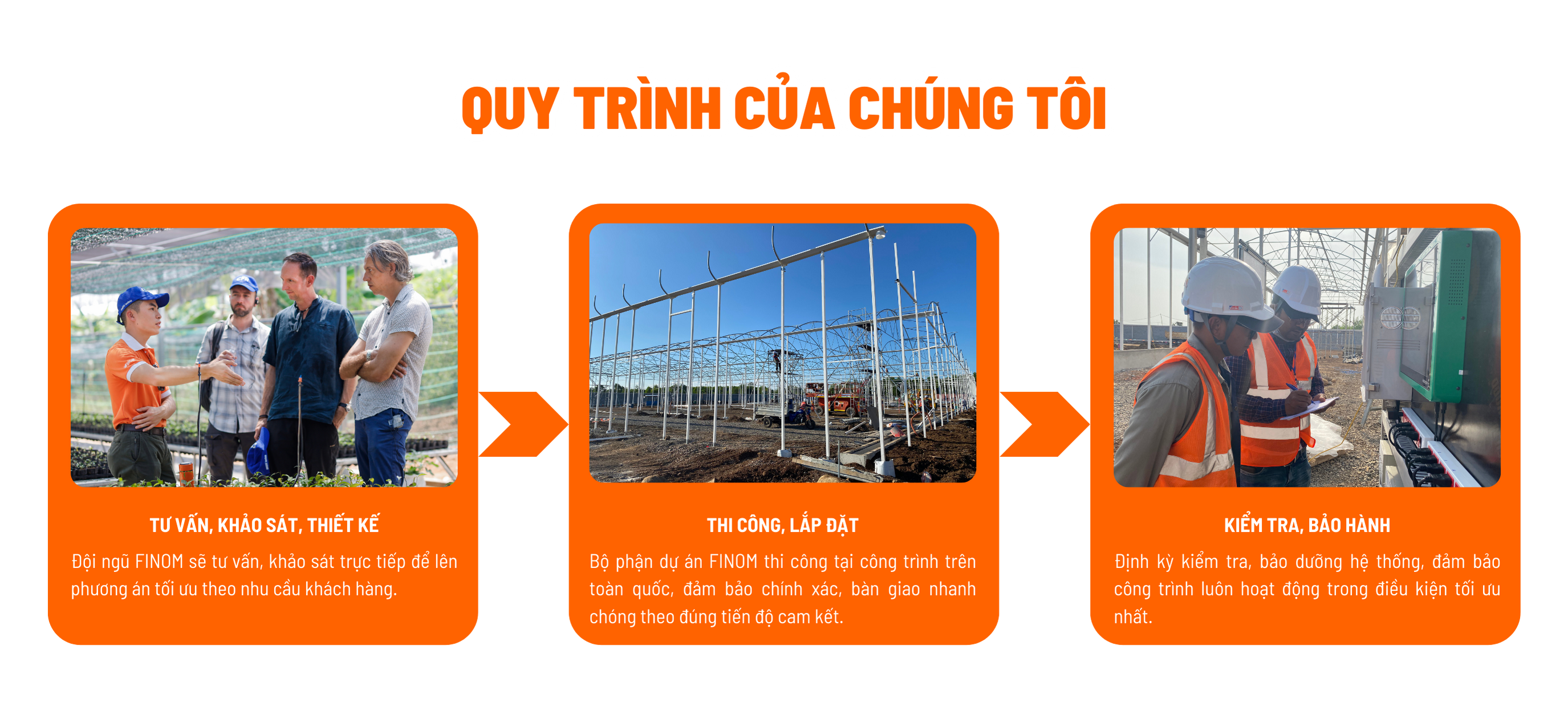 Với kinh nghiệm đã thi công hàng trăm công trình hệ thống tưới trên khắp cả nước, áp dụng công nghệ giải pháp tưới hàng đầu thế giới như: Irritec (Ý), Hunter (Mỹ), AgroDrip (Hy Lạp), Baccara (Israel), Tavlit (Israel), Finom cung cấp các giải pháp tưới đa dạng phục vụ nhiều lĩnh vực và đối tượng cây trồng canh tác khác nhau.