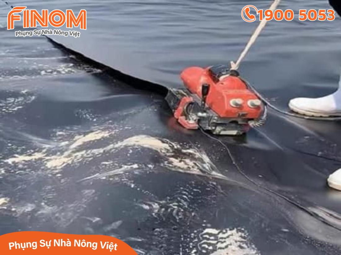- Dùng bao đất, thanh tre, hoặc bê tông nhẹ để cố định mép bạt quanh hồ.