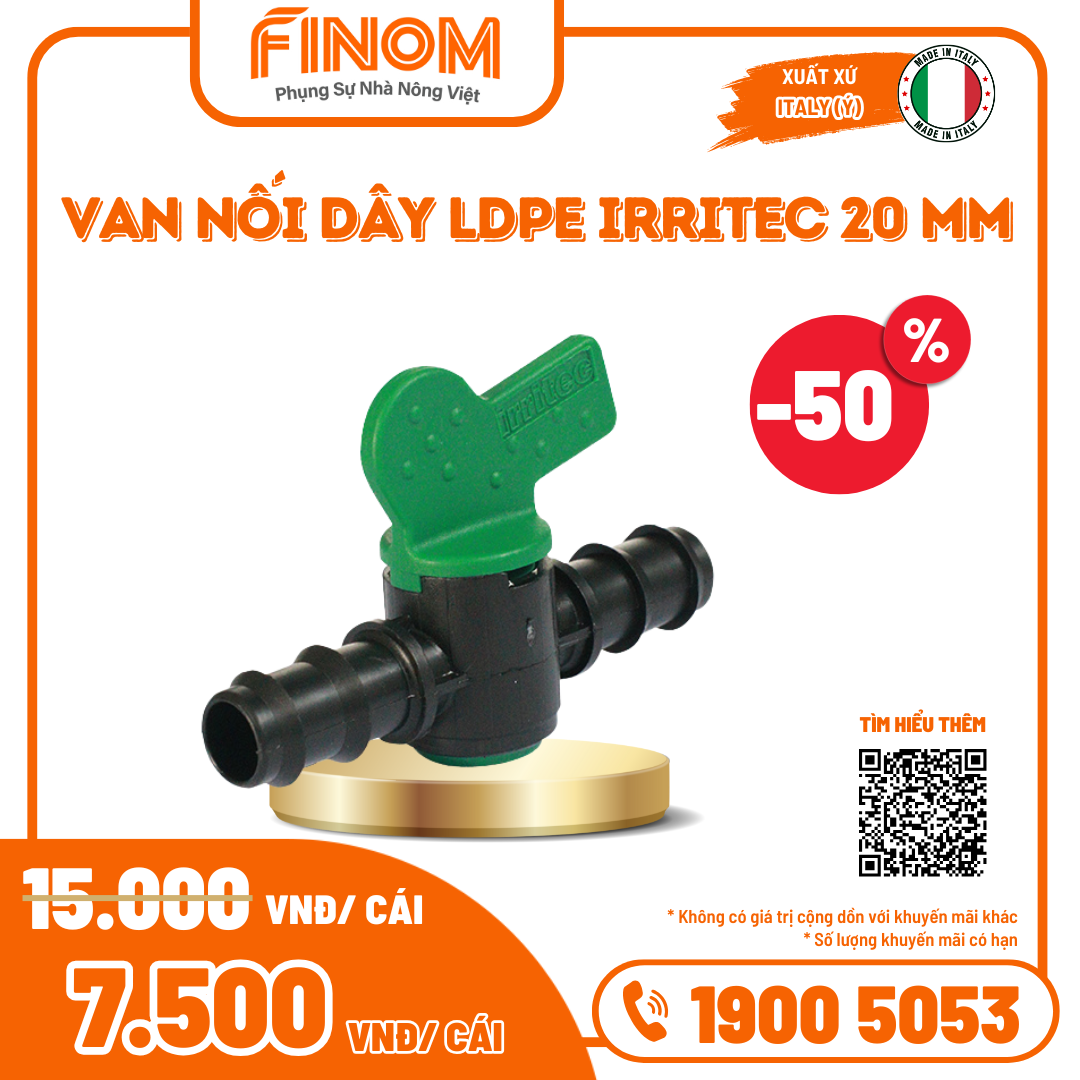 Ứng dụng: dùng để nối 2 dây LDPE 20mm với nhau, dây sử dụng phổ biến trong hệ thống tưới nhỏ giọt, đồng thời có van khóa mở nước.