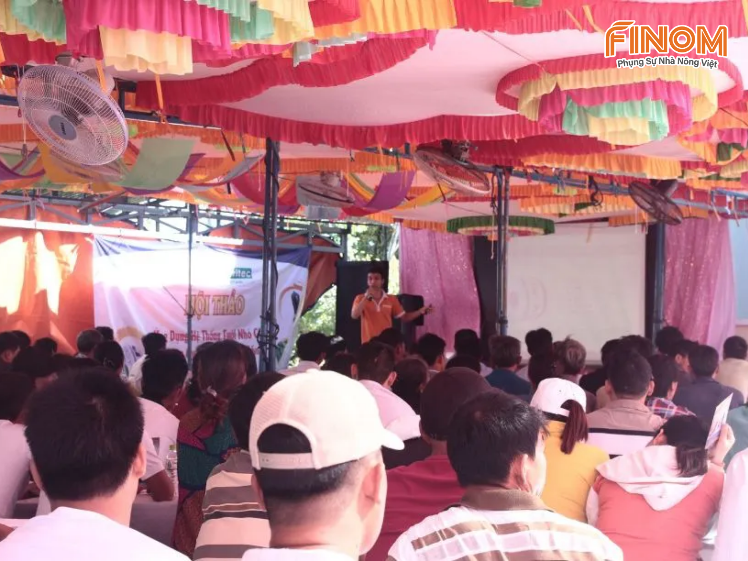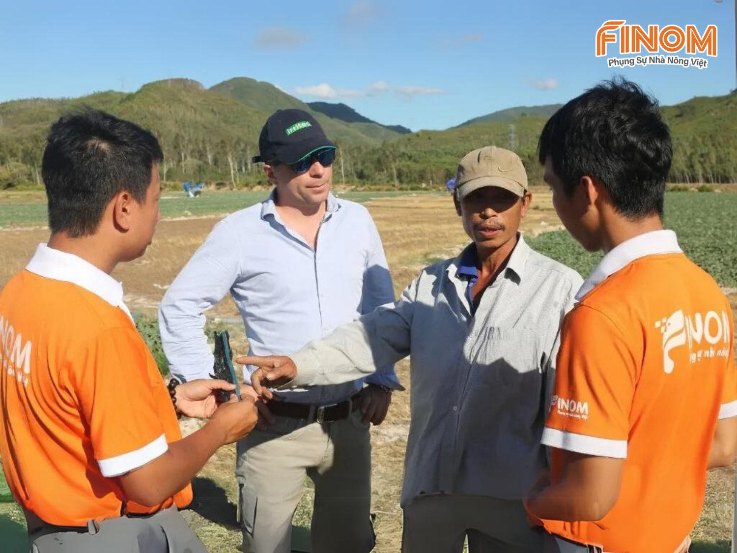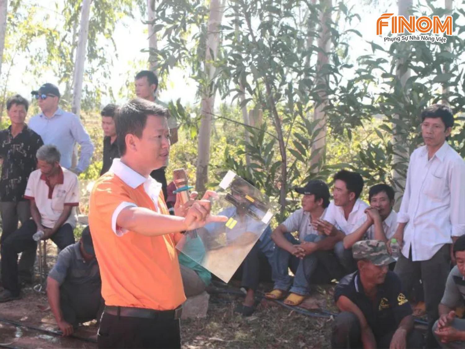 Đại diện công ty Finom chia sẻ với bà con nông dân về hệ thống tưới nhỏ giọt